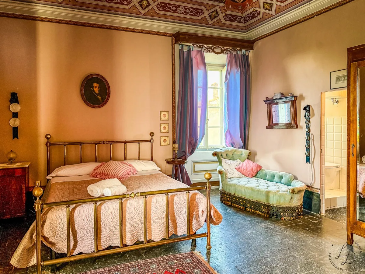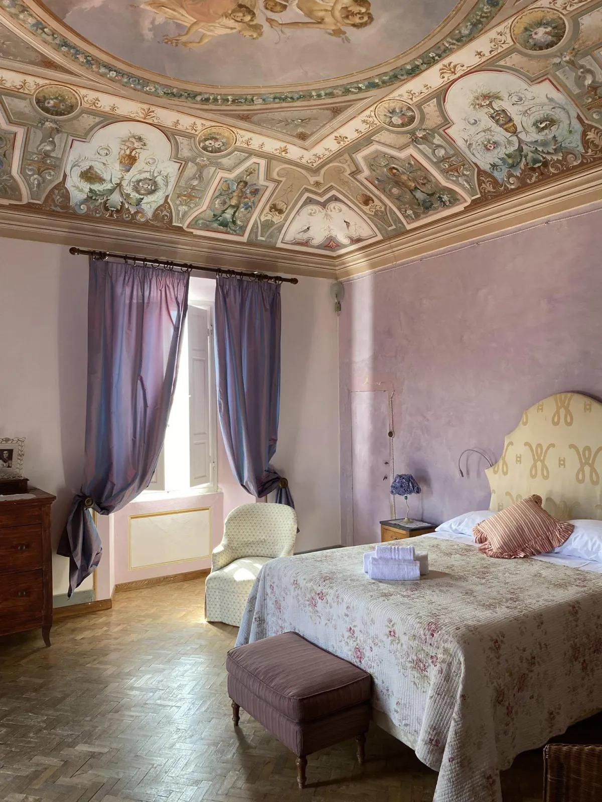 The villa, a former summer residence of a noble Perugian family, boasts original frescoes, elegant interiors, and sun-drenched terraces. Enjoy its lavender-scented gardens, peaceful stone pathways, and a pool nestled among olive trees with views up to the hilltop town of Panicale.
